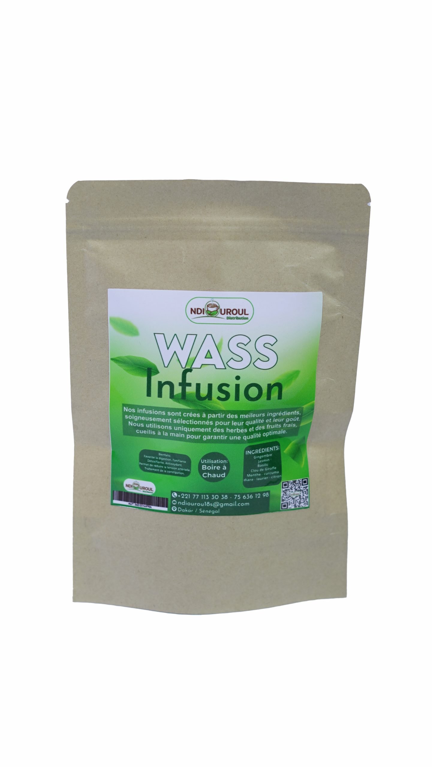 Infusion naturelle à base de plantes locales sélectionnées pour leurs vertus médicinales. Le « Ndiouroul » est traditionnellement reconnu au Sénégal pour soulager les maux de ventre, faciliter la digestion et apporter un bien-être général après les repas.